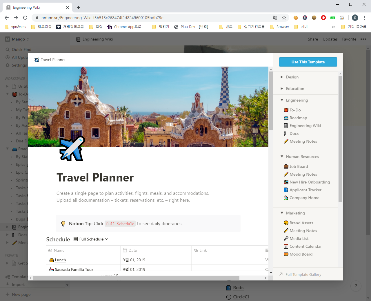 Metting Notes를 기록하거나 ToDo리스트를 관리할 수 있고 인사과정 여행 계획등 비지니스부터 개인적인 용도의 다양한 템플릿을 편하게 사용 가능합니다.