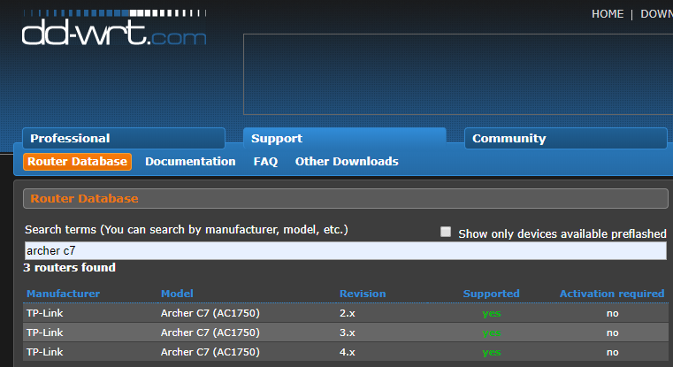 https://dd-wrt.com/support/router-database/ 에서 해당 공유기에 대한 펌웨어 다운로드(지원되는 기기만)