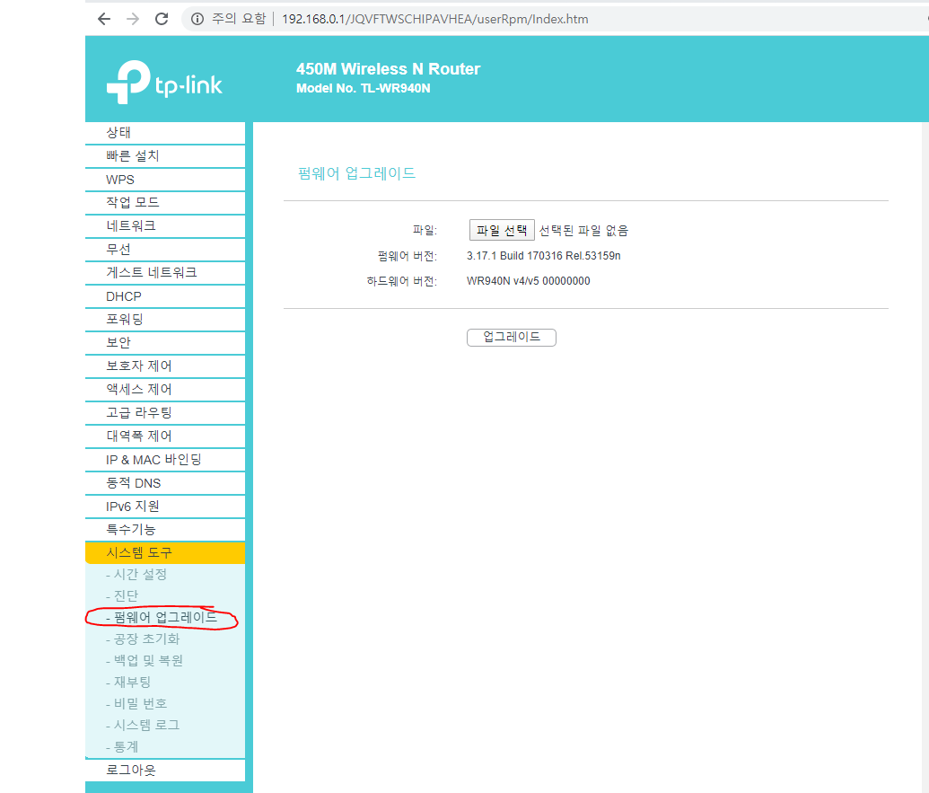 - 관리자 아이디로 로그인 후 시스템 도구 => 펌웨어 업그레이드로 들어가줍니다.