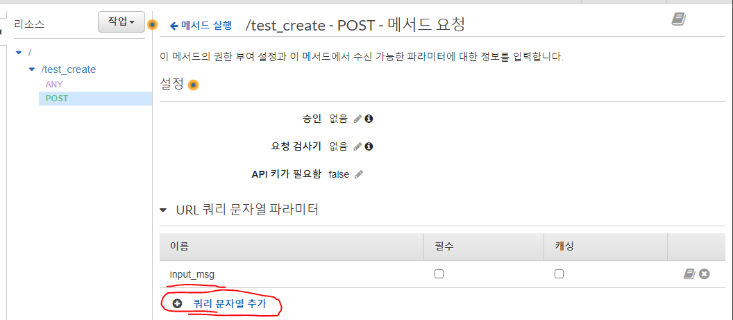 - 작업 버튼을 누르고 메소드 생성을 눌러 POST 을 추가해줍니다.