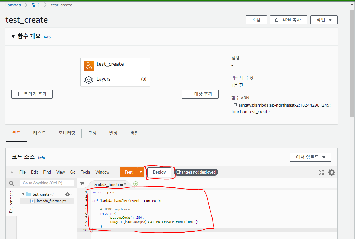 - 함수 내용을 입력하고 Deploy를 눌러 배포해줍니다.