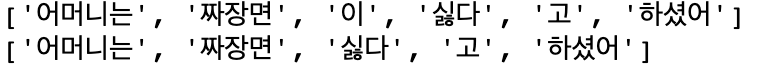 sentence = "어머니 는 짜장면 이 싫다 고 하셨 어"